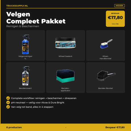 5-delig | Bespaar €10,99€62,30€73,29Unit price /UnavailableVelgen Compleet Pakket – Reinigen & Beschermen