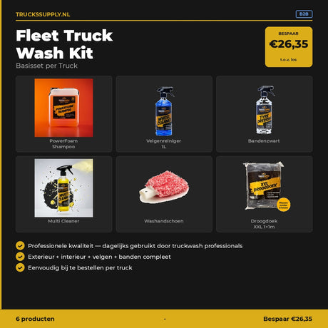 6-delig | Bespaar €17,80€100,90€118,70Unit price /UnavailableFleet Truck Wash Kit – Basisset per Truck